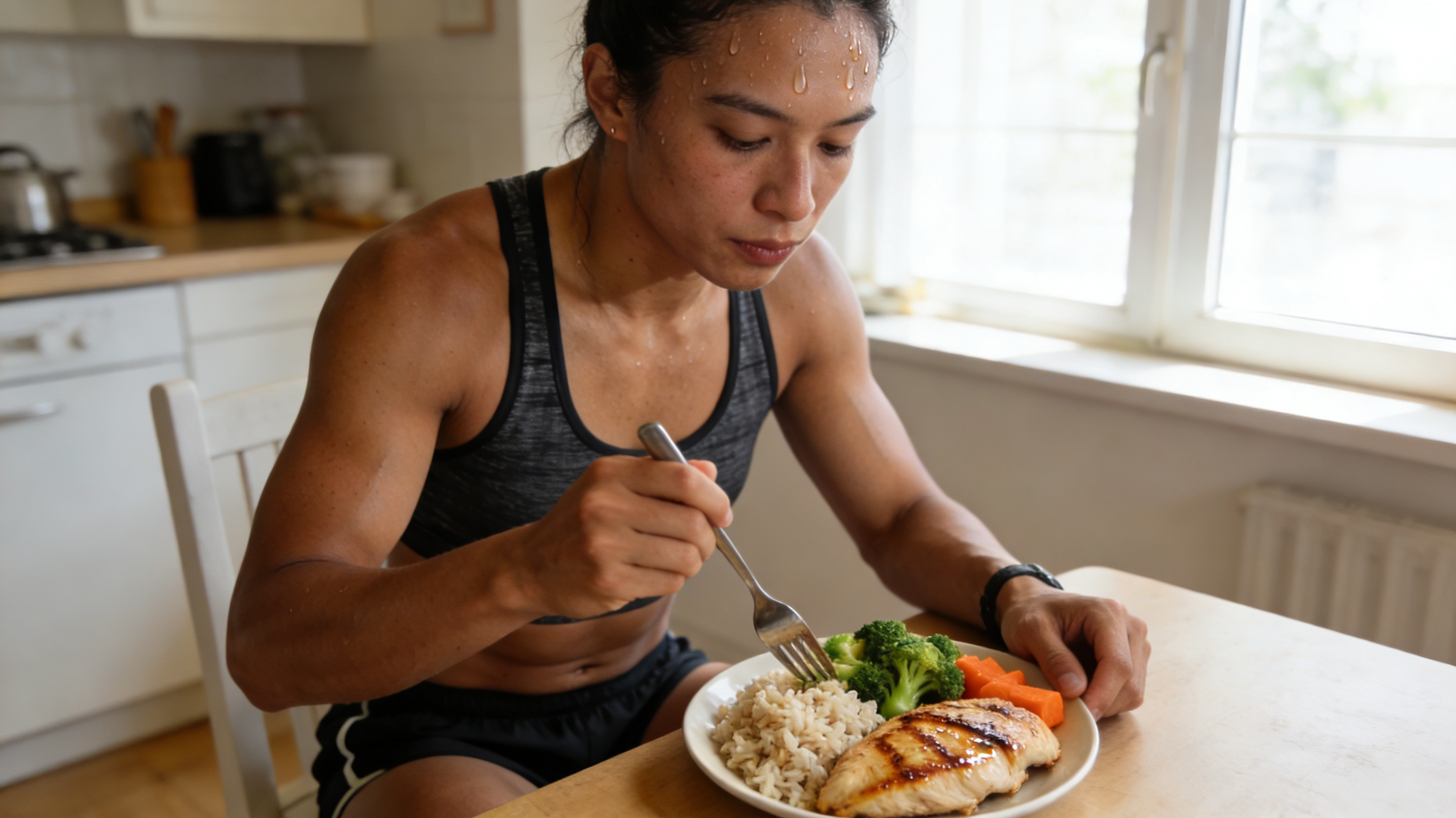 · Focus: Listen to hunger cues. A balanced meal containing protein and carbs at your next regular mealtime is perfectly sufficient. Consistency in daily nutrition matters more than precise timing.