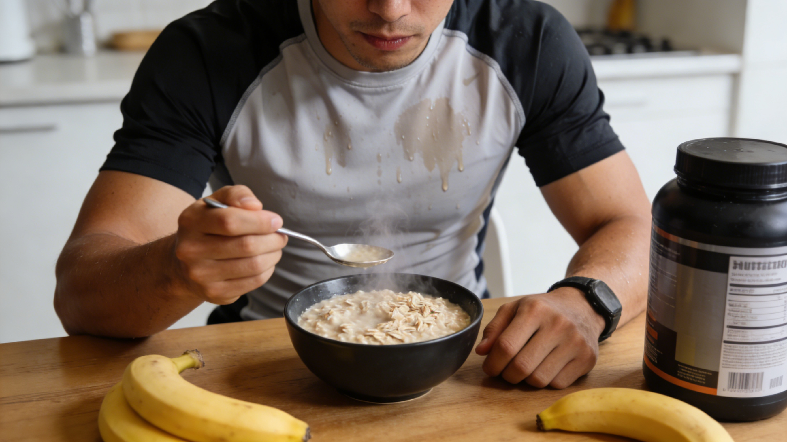 · Example Meal: A large bowl of oatmeal with banana, honey, and a scoop of protein powder.